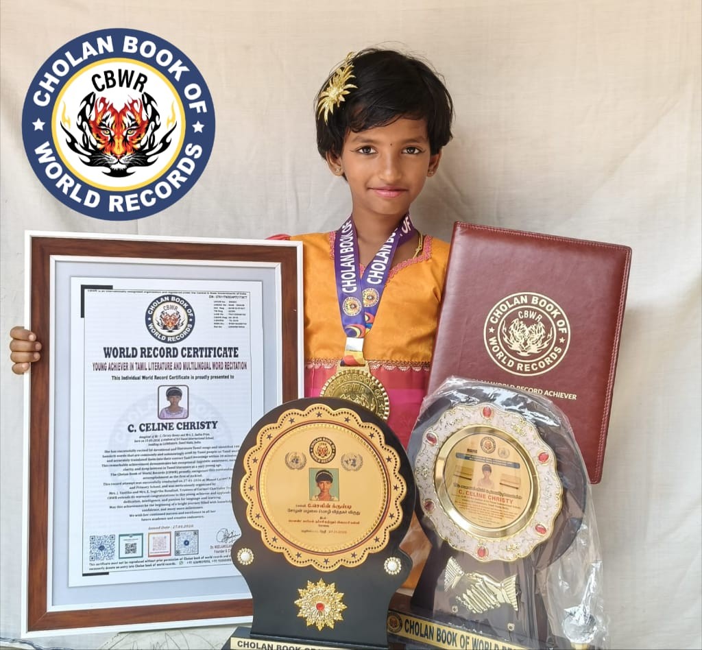 Recited 500 Thirukkurals while performing 5 different yoga postures in 26 minutes and 46 seconds, demonstrating exceptional memory, focus, and body control at a very young age.