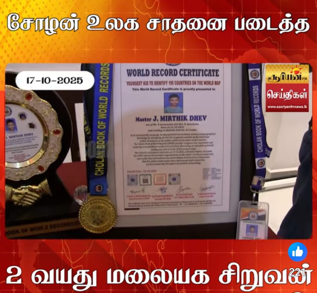 The Cholan Book of World Records proudly recognizes this remarkable achievement as the first of its kind, showcasing her exceptional memory, quick learning ability, and intellectual sharpness.