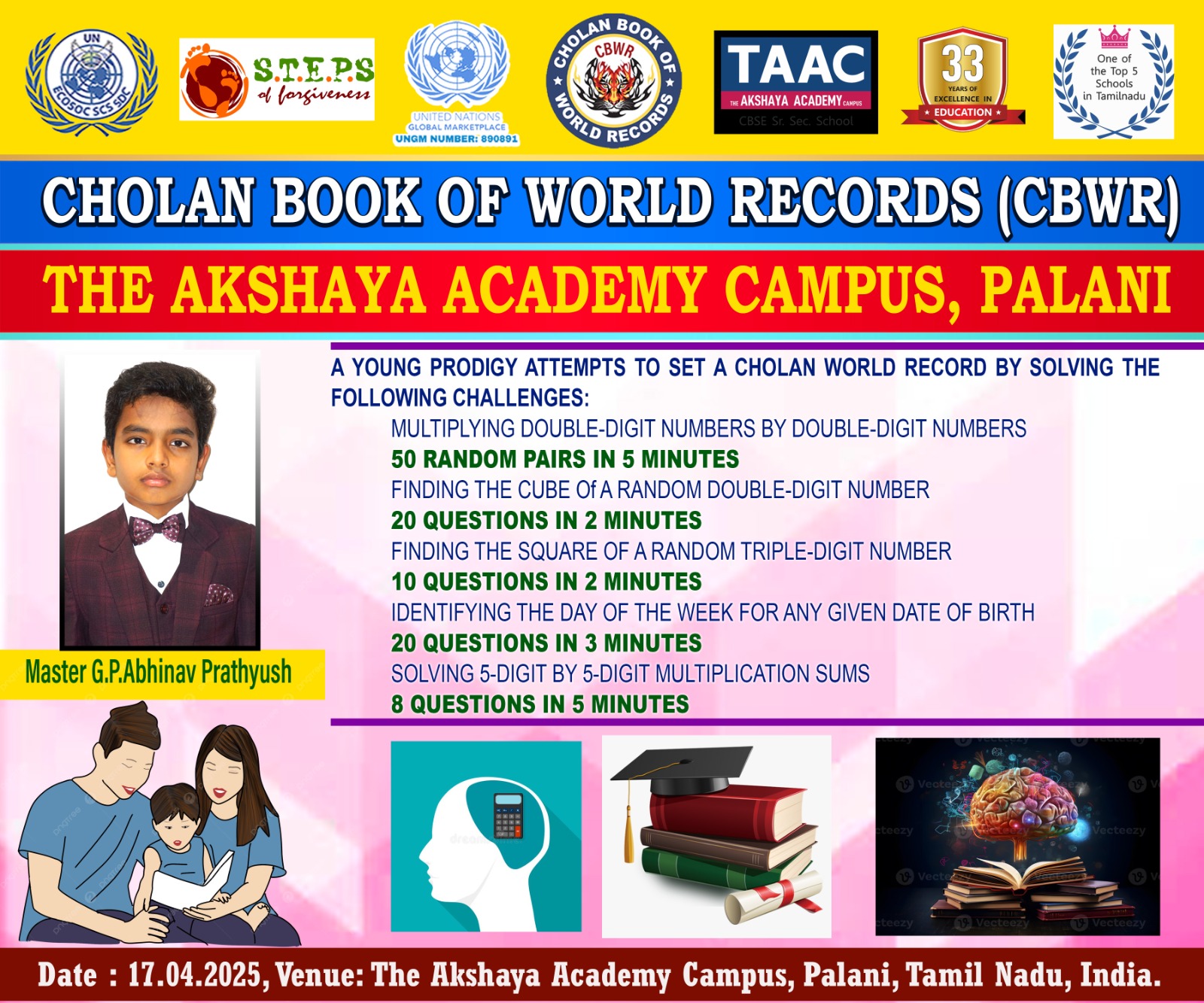 This remarkable performance took place on 17 of April 2025, at The Akshaya Academy Campus Palani.