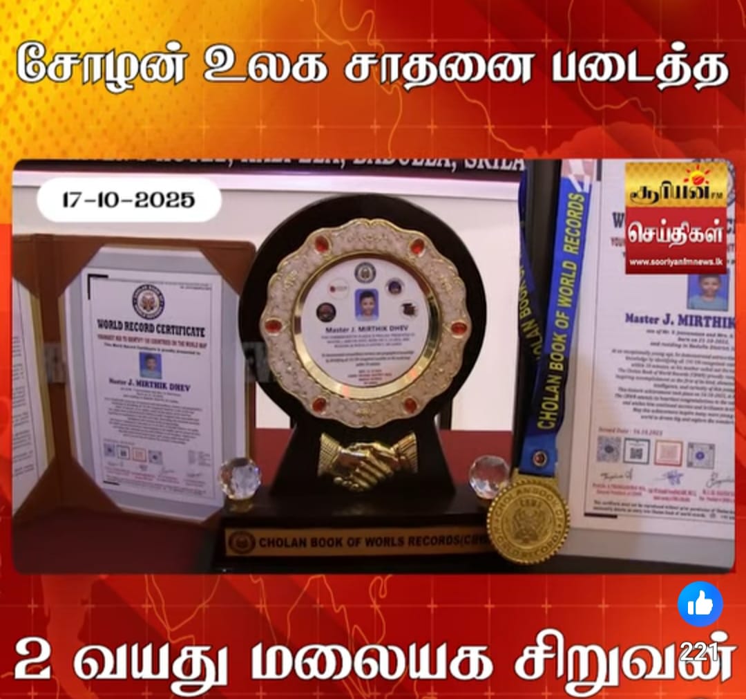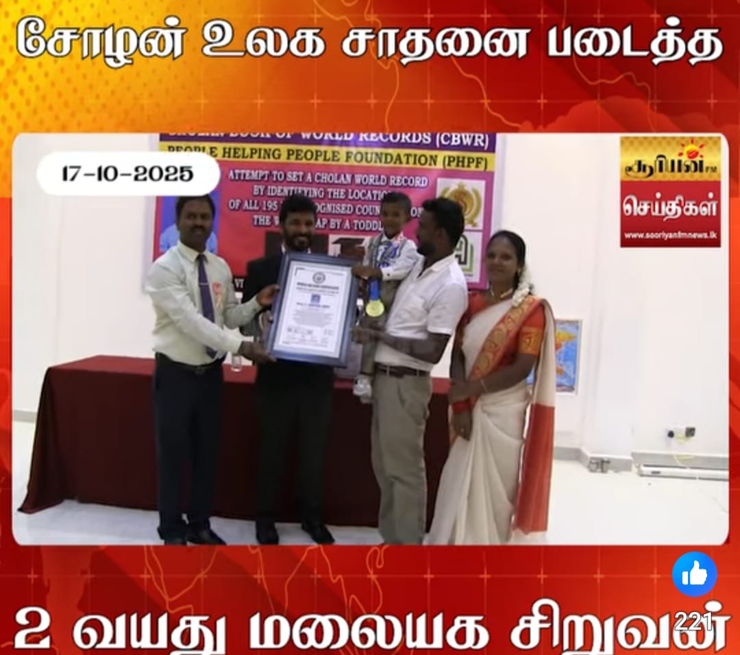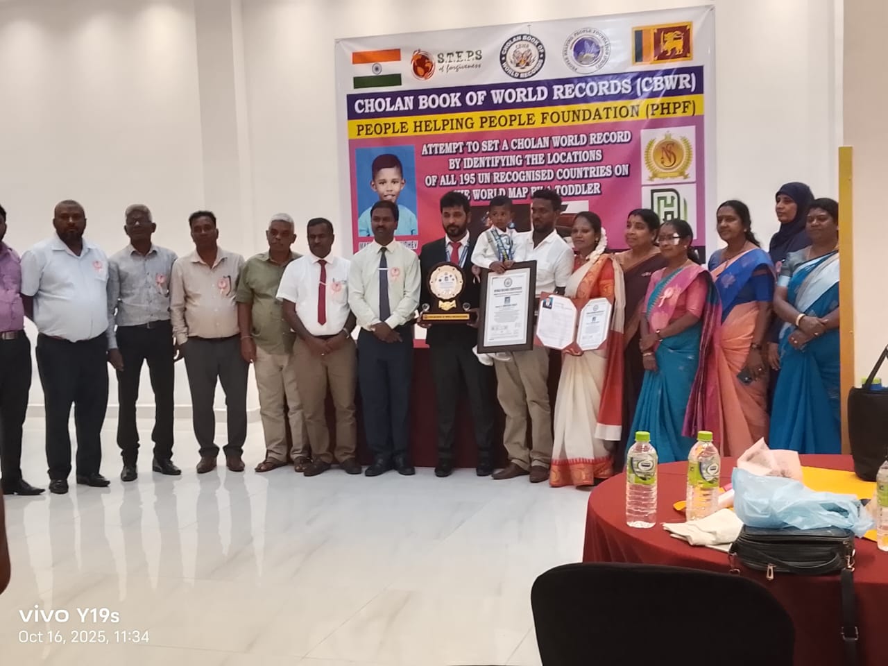 The event was jointly organized by the Cholan Book of World Records and the People’s Helping People Foundation, adding significance to the memorable occasion.