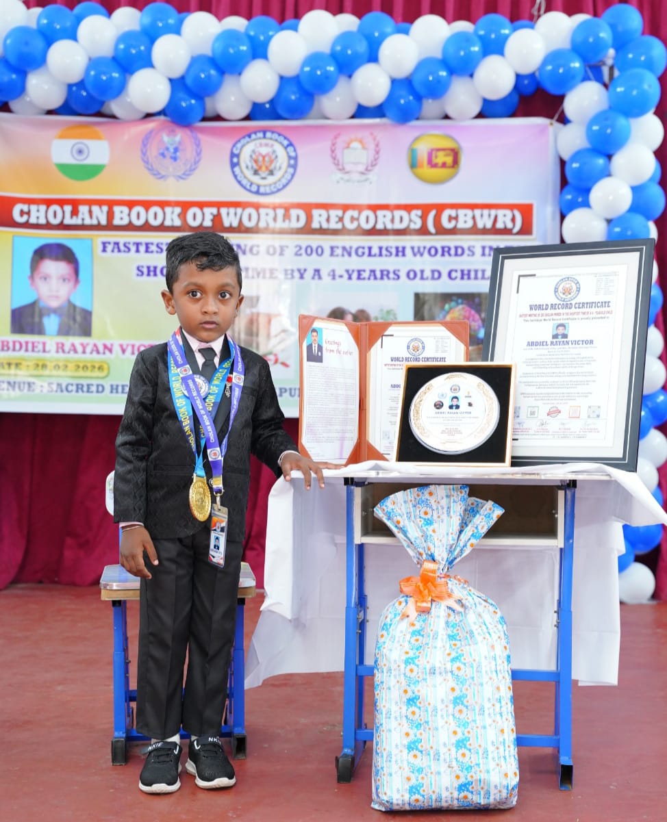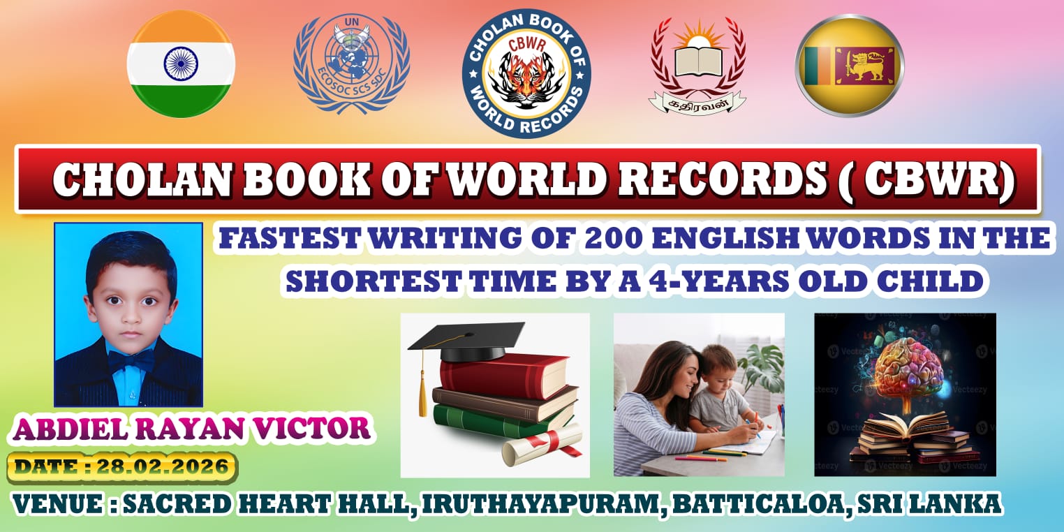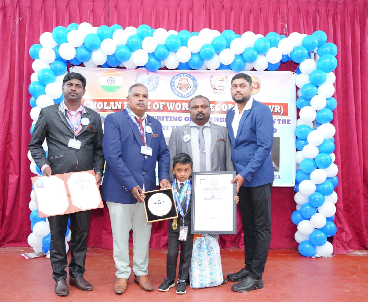Cholan Book of World Records (CBWR) officially recognizes this extraordinary accomplishment as the first of its kind, setting a new benchmark for young achievers.