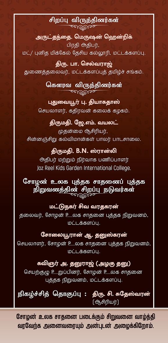 The event was held in the presence of Mr. T. Inparasa, Joint Secretary of the Sri Lankan Branch of CBWR; Mr. Siva Varathakaran, Batticaloa District President; Mr. A. Thanuskaran, District Secretary; and Poet A. Thanuraj, Committee Member of CBWR.