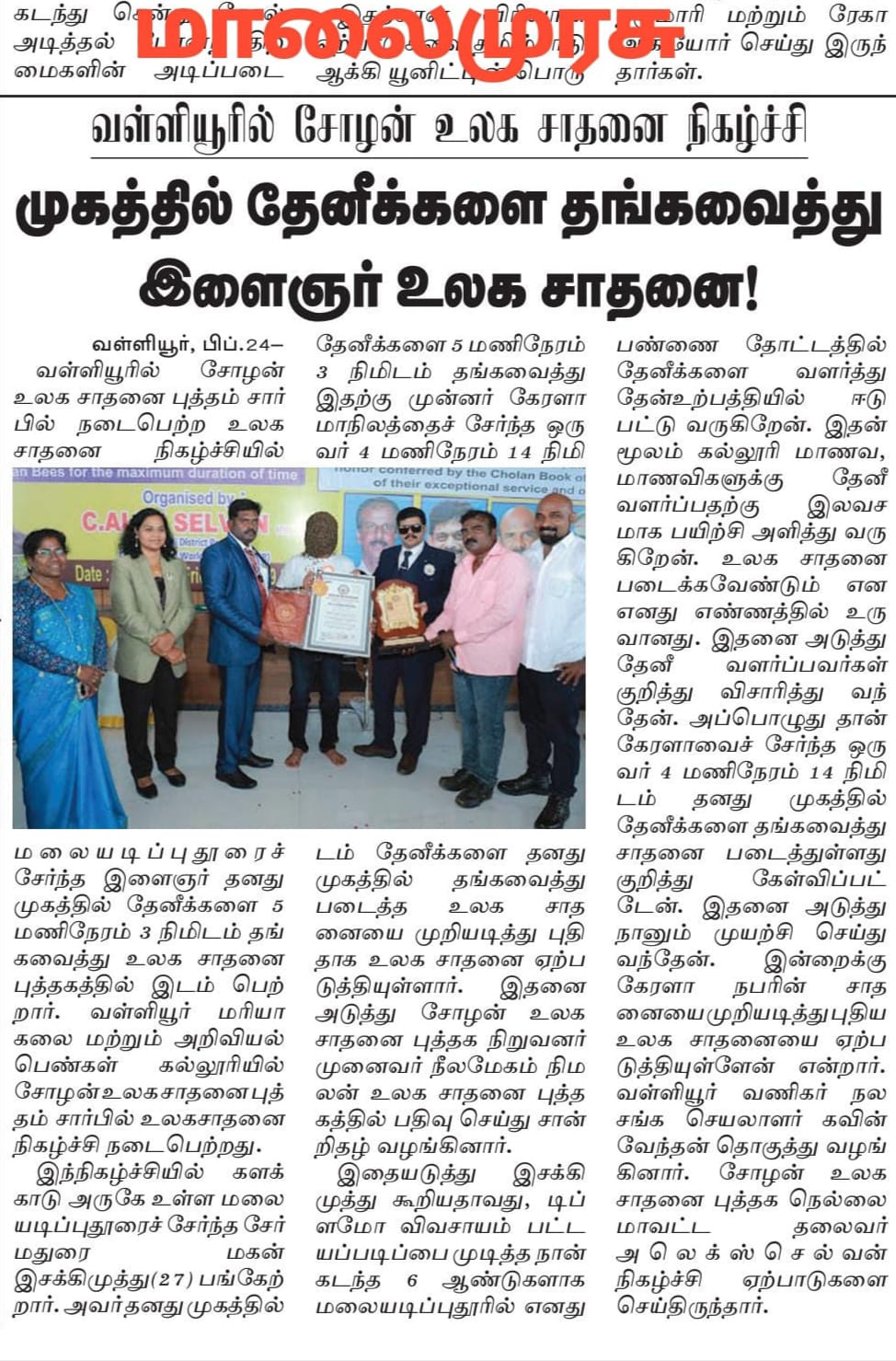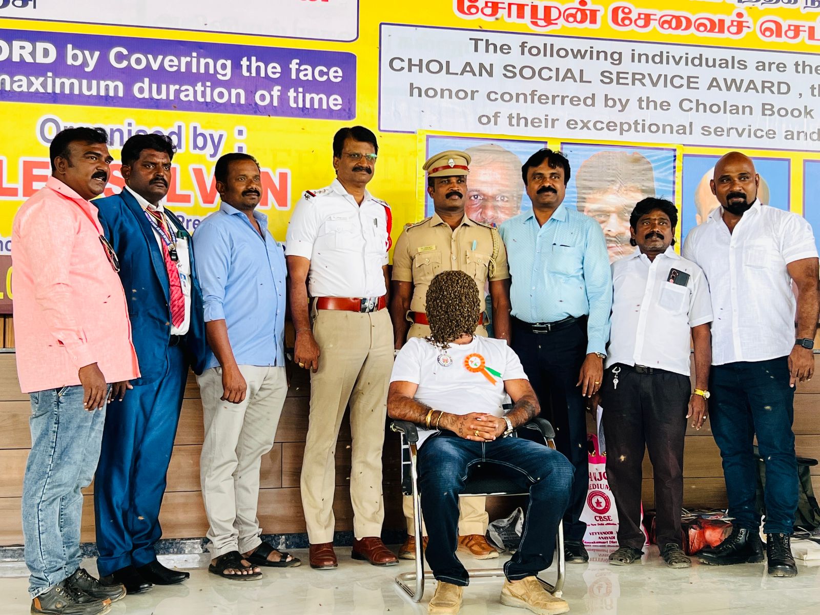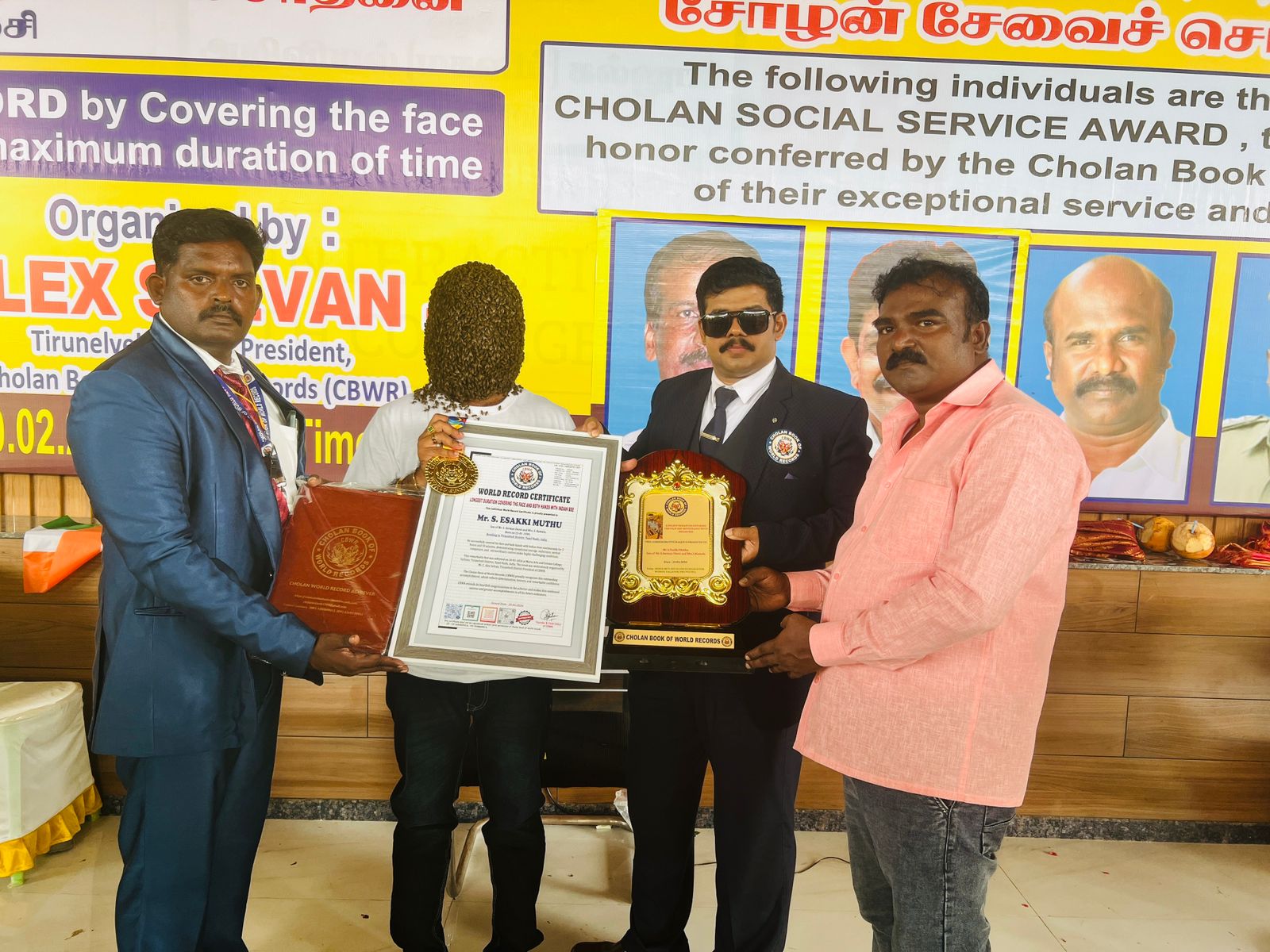 In recognition of his extraordinary achievement in successfully covering his face with Indian bees continuously for an astonishing duration of 5 Hours and 3 Minutes, demonstrating exceptional bravery, unwavering focus, remarkable physical endurance, and outstanding mental resilience under intensely demanding and high-risk conditions.