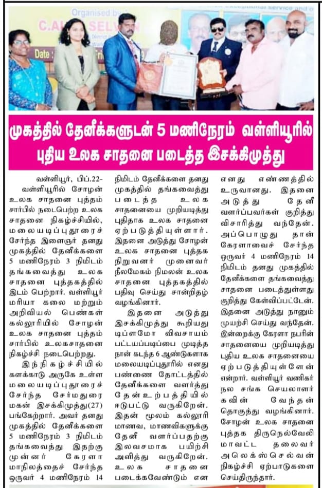 LONGEST DURATION COVERING THE FACE WITH INDIAN BEES