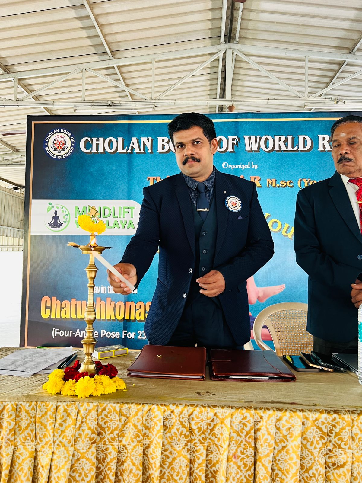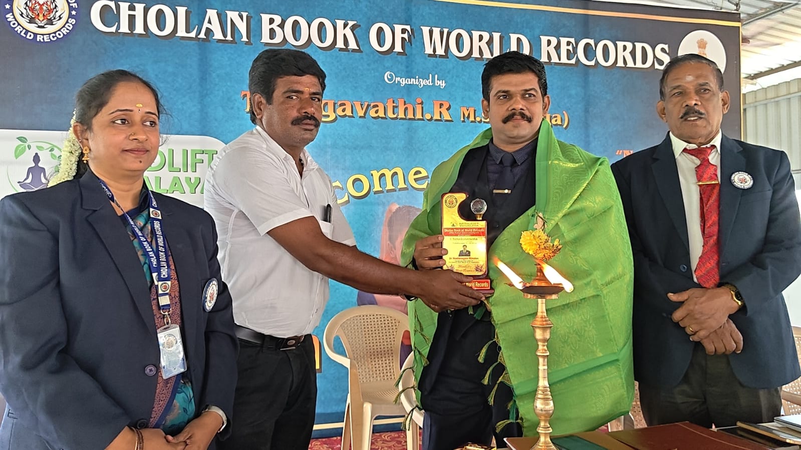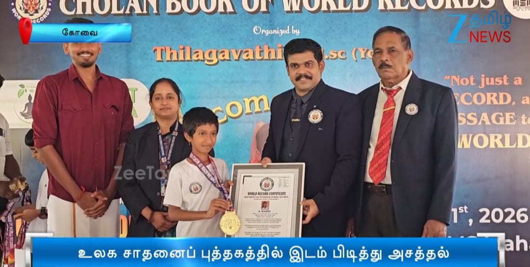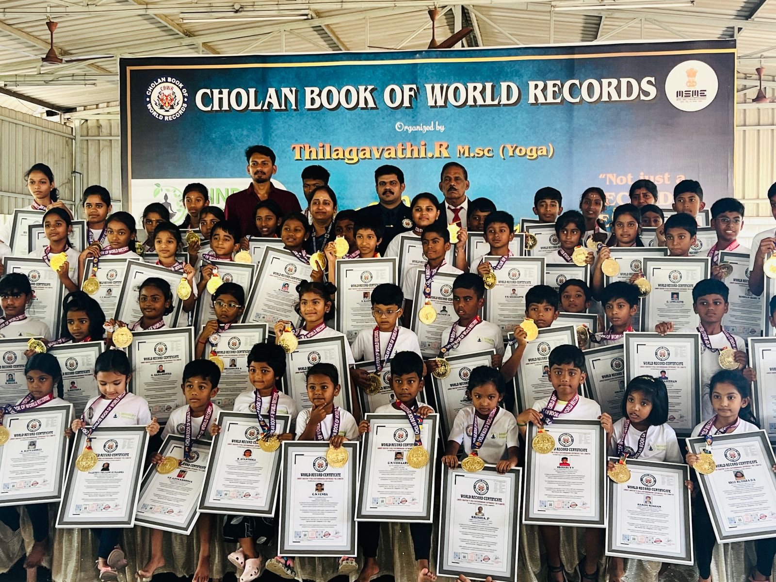 This historic achievement has been officially recognized by the Cholan Book of World Records (CBWR) as the first record of its kind, establishing a new benchmark in the field of yoga accomplishments.