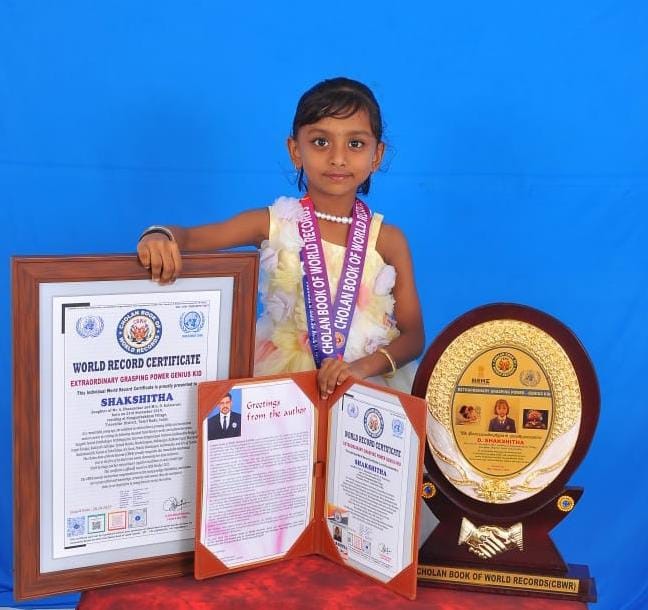 Recited 500 Thirukkurals while performing 5 different yoga postures in 26 minutes and 46 seconds, demonstrating exceptional memory, focus, and body control at a very young age.