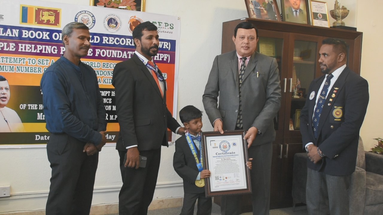 Sri Nagavani Raja, Vice President of the Sri Lanka Branch of the Cholan Book of World Records, and General Secretary Indranath Perera confirmed the attempt as a world record after keenly monitoring it.