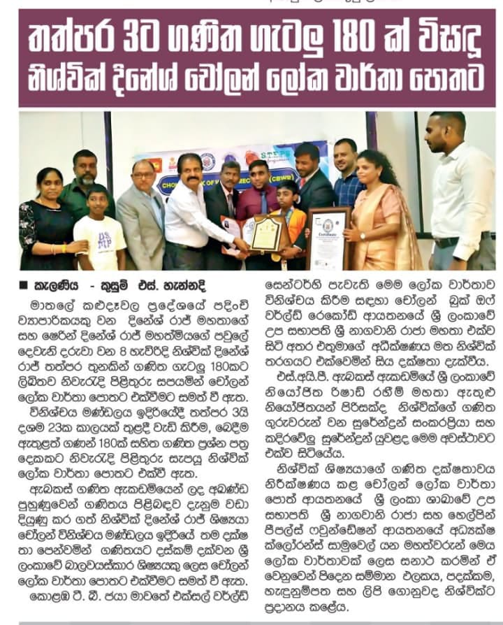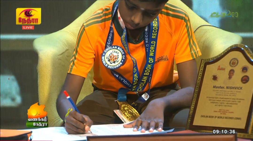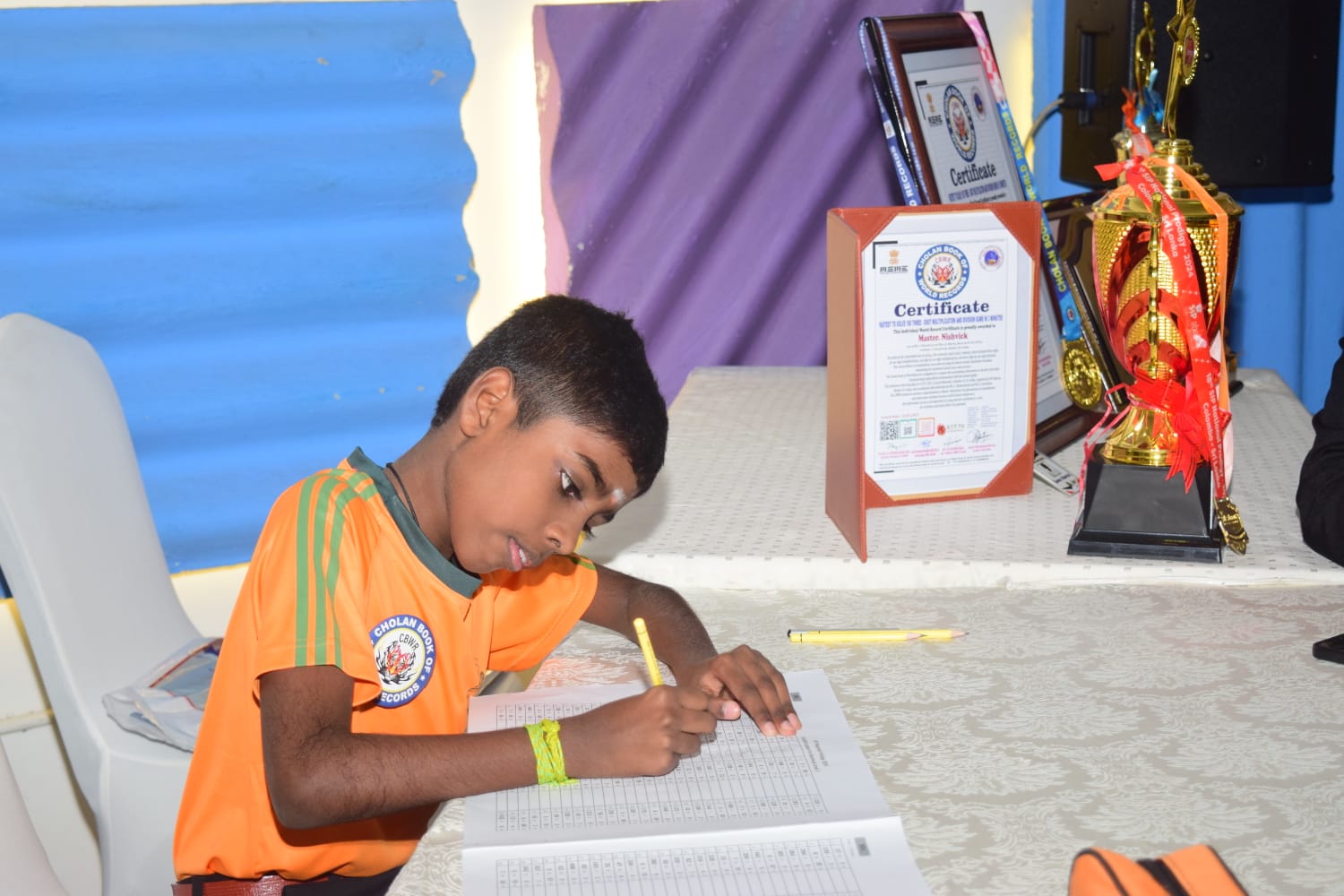 The Cholan Book of World Records is delighted to recognize this outstanding achievement as the first of its kind, demonstrating unparalleled mathematical skill and mental agility.