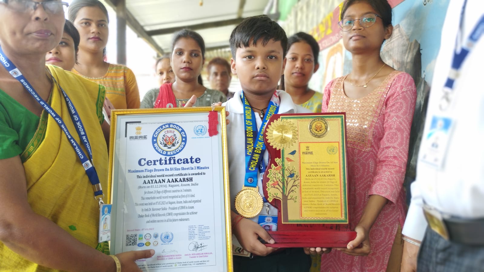Certificate, medal,ID card and memorial shield were hand over to the Cholan world record achiever by the adjudicator of CBWR Amb.Dr.Hareswar Saikia the president of CBWR in Assam.