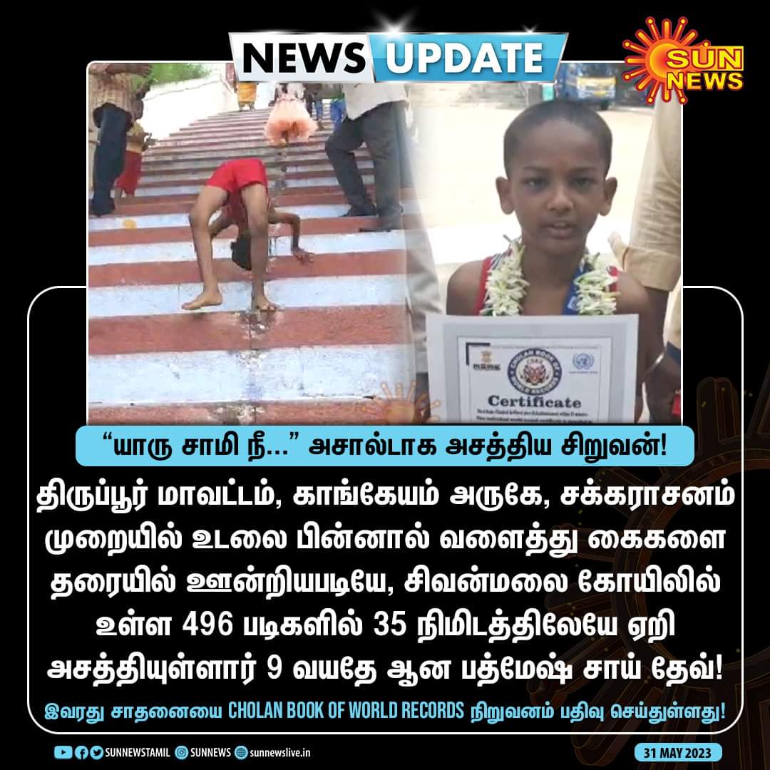 The Cholan Book of World Records (CBWR) recognizes this outstanding accomplishment as the first of its kind.